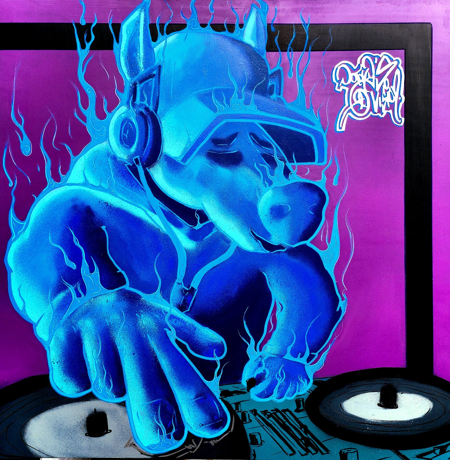 Inspirées du graffiti, une énergie urbaine, couleurs, ombres et perspectives dynamiques, ses toiles sont spontané et originales. Elles prennent vie grâce à diverses techniques comme l’aérosol, l’acrylique et les marqueurs.